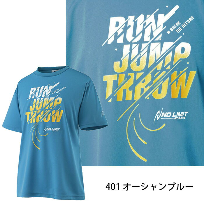 全胸にプリントされたRUN・JUMP・THROWの躍動感あるレタリングデザインが特徴的。