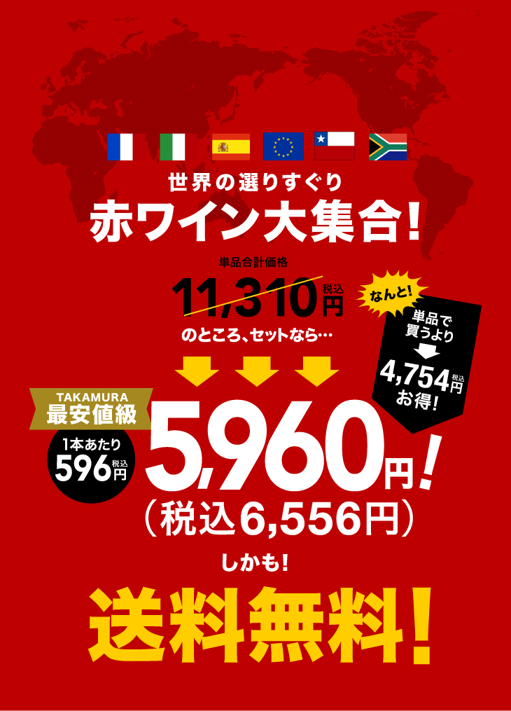 ワインセット 赤 送料無料 第18弾 世界各国の選りすぐり 赤ワイン 大集合! 1本あたりたったの596円(税込)!厳選赤ワイン11本 セット(追加1本同梱可)| 飲み比べ ワイン デイリーワイン [T]