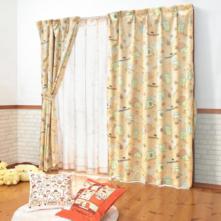 ポムポムプリン 100×200cm(4枚組) ( もふもふ毛布のねむねむ ) 3級 遮光カーテン と ミラーレース カーテン 4枚セット プリン かわいい 4枚入り 掃き出し窓 大窓 おしゃれ サンリオ