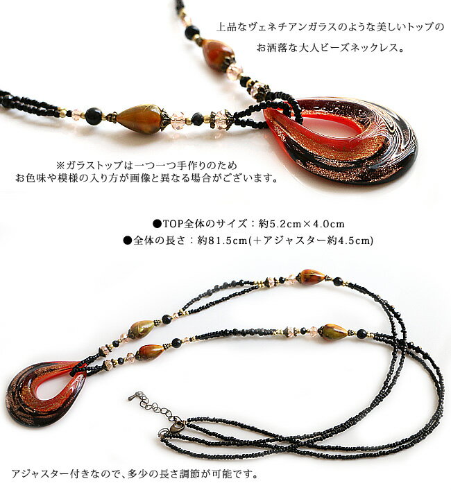 商品説明 ヴェネチアンガラスのような美しいトップのお洒落な大人のロングネックレス。