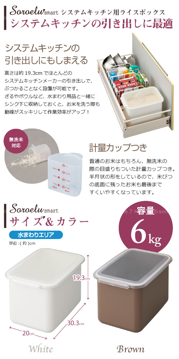 米びつ 5kg /ソロエルスマート システムキッチン用ライスボックス6 6kgタイプ/【ポイント 倍】