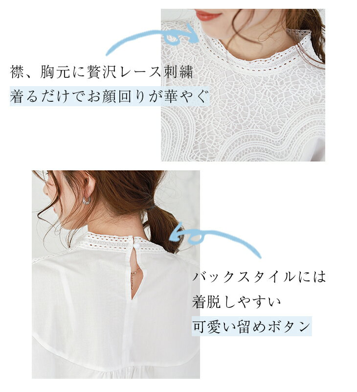 レース刺繍 ブラウス レディース 長袖 ボリューム袖 パフスリーブ トップス ドロップショルダー ゆったり スタンドカラー シャツ 大人 可愛い 上品 2022春夏新作 フリー 【lgww-at4167】【即納:1-5営業日】【送料無料】メ込2