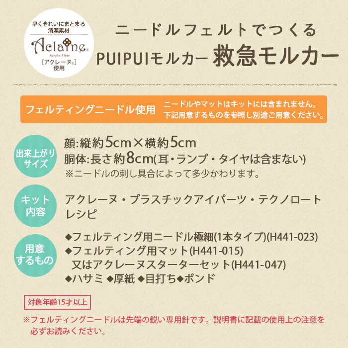【9/1は当店ポイント11倍!】アクレーヌ キット ニードルフェルトでつくる PUIPUI モルカー 救急モルカー モルカー パペットアニメ 日本製 フェルト羊毛 手芸キット 手作りキット 子供 女の子 男の子 ハンドメイド 手づくり マスコット