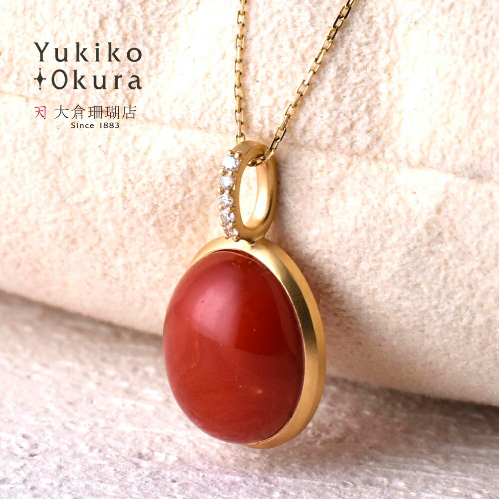 血赤珊瑚 さんご サンゴ ペンダント トップ ヘッド ダイヤ K18 18金 ゴールド オーバル 大ぶり ボリューム ユキコ オオクラ レディース アクセサリー ジュエリー 送料無料 3月 4月 誕生石