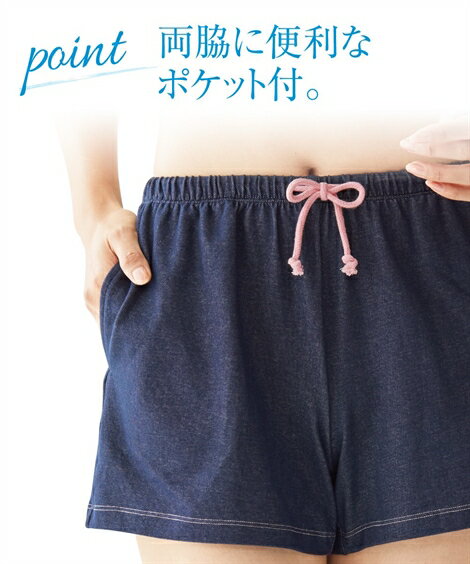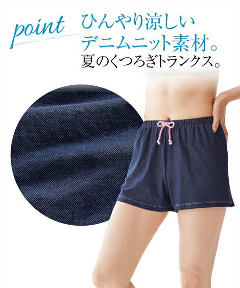 ショーツ スタンダード レディース 接触冷感 綿混 ストレッチ デニム ニット くつろぎ トランクス 深ばき 2枚組 夏 ダークネイビー+黒 M/L ニッセン nissen